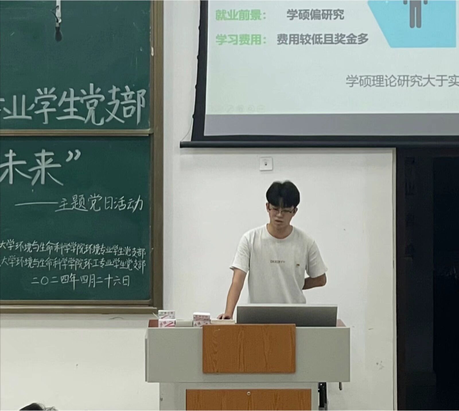 为增强2021届同学对考研、考公的了解,进一步调动同学们的考研、考公的积极性,帮助同学们更好地备考,betway必威西汉姆联官网环境专业学生党支部、betway必威西汉姆联官网环工专业学生党支部于4月26日晚在地海楼B109教室开展“研途修筑理想,筑梦公考未来”主题党日活动。与会人员有环境专业学生党支部书记莫莉萍、环工专业学生党支部书记曲炳鹏,环境科学与环境工程专业2020级、2021级及2022级部分学生。