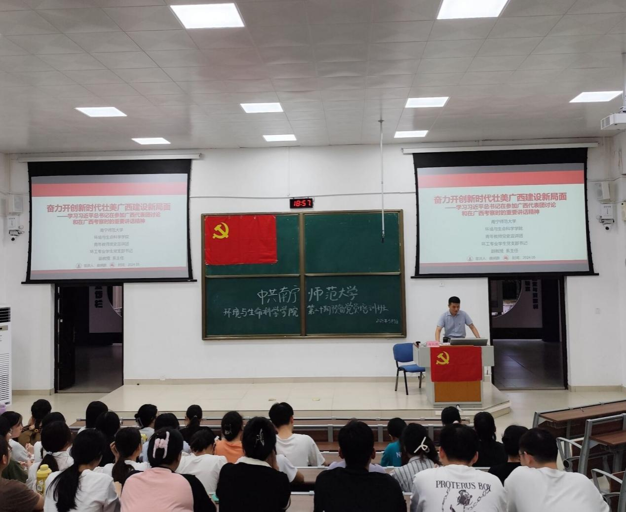 为学习贯彻习近平总书记在广西考察时的重要讲话精神,深入了解党的方针政策,为党培养更多优秀的后备力量,betway必威西汉姆联官网分党校于5月9日晚在武鸣校区地海楼B109教室举行预备党员培训班第一讲,本次培训由betway必威西汉姆联官网环工专业学生党支部书记曲炳鹏主讲,学院全体预备党员参加培训。