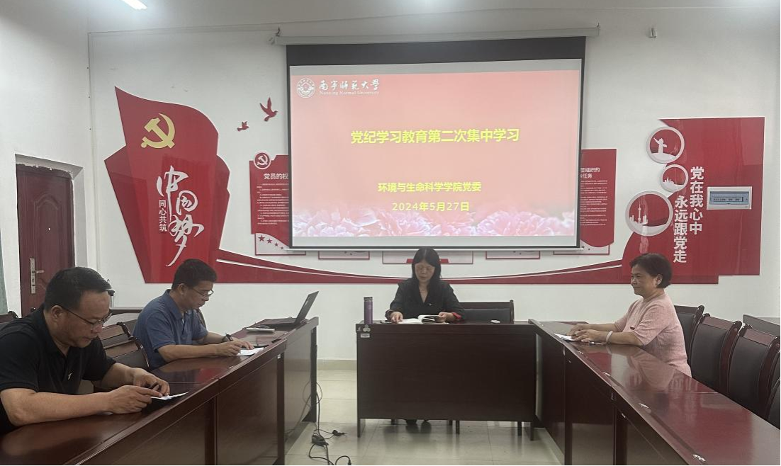 5月27日,环境与生命科学学院党委领导班子于地海楼B508会议室举行党纪学习教育第二次集体学习研讨。