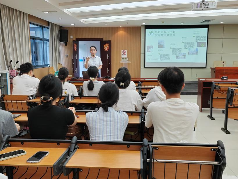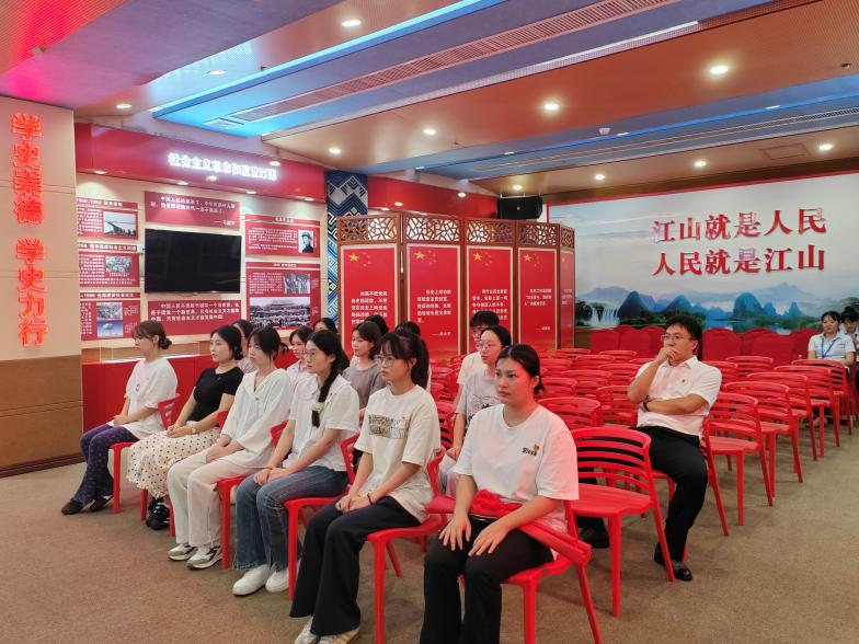 下午15时,党员同志们到达广西壮族自治区生态环境厅学术报告厅,由学院优秀校友、区生态环境监测中心高级工程师刘捷具体介绍生态环境监测50年发展历程,以及本次活动的参观路线和内容。