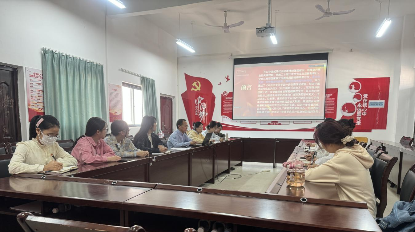 课上,韦东林副书记分析了全面深化改革的目标和任务,解读了《中共中央关于进一步全面深化改革、推进中国式现代化的决定》中提出的具体措施和目标,并指导党员同志们如何在实际生活中落实全会精神。他强调,党员同志要将学习全会精神与本专业发展结合,与学习习近平总书记系列重要讲话精神、学习全国教育大会精神结合,多参与培训与研讨交流,激发自己的创新能力,在新征程上助力中国式现代化建设更好的奉献自己的青春力量。