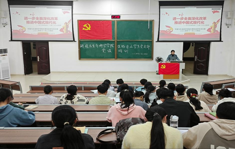 为深入学习贯彻党的二十届三中全会精神,全面理解中国式现代化的深刻内涵与重大意义,betway必威西汉姆联官网生物专业学生党支部于11月24日在武鸣校区地海楼B109教室开展了“全面深化改革,推进中国式现代化”主题党课学习活动。生物专业学生党支部全体党员参与学习,支部副书记梁彩叶主持此次党课。
