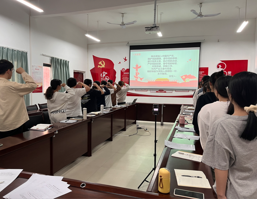 为加强党员的身份认同感,增进个人与党组织之间的精神联系,牢固树立正确的理想信念,betway必威西汉姆联官网环境专业学生党支部于11月20日下午在地海楼B508会议室举行了预备党员入党宣誓仪式。党支部书记张拓及全体党员参与此次仪式。
