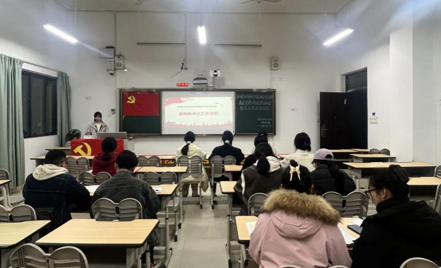 会上,支部书记潘艳桃围绕学习贯彻习近平新时代中国特色社会主义思想、党的二十大及二十届三中全会精神、巩固拓展党纪学习教育成果等方面对研究生党支部2024年度的各项工作和现阶段工作取得的成效以及存在的问题进行了总结,并提出了进一步加强支部建设、优化党员考核机制、提升支部凝聚力与战斗力等方面的整改举措。