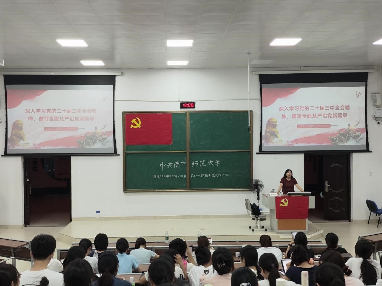张忠华首先阐述了党的二十届三中全会的核心要义,结合中央八项规定精神,为学员们剖析了全面从严治党的内涵,同时指出大学生党员在全面从严治党中的责任与使命。她从加强理论、党性学习、坚定信念、发挥先锋模范作用、积极投身改革实践等方面讲解大学生日常生活中践行全面从严治党的途径,并鼓励党员同志要勇于担当作为,肩负起民族复兴的伟大使命。