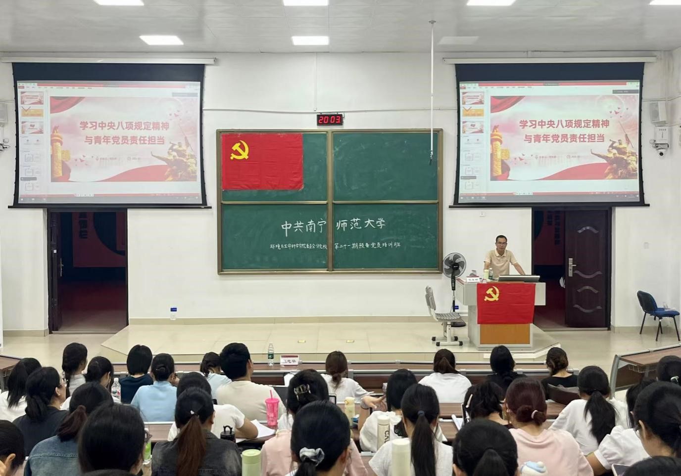 为深入学习贯彻中央八项规定精神,引导青年党员以责任担当践行党的作风建设要求,betway必威西汉姆联官网分党校于5月15日晚在武鸣校区地海楼B109教室举行预备党员培训班第四讲,本次培训由学院党委副书记(主持党委工作)韦东林主讲,学院全体预备党员参加培训。
