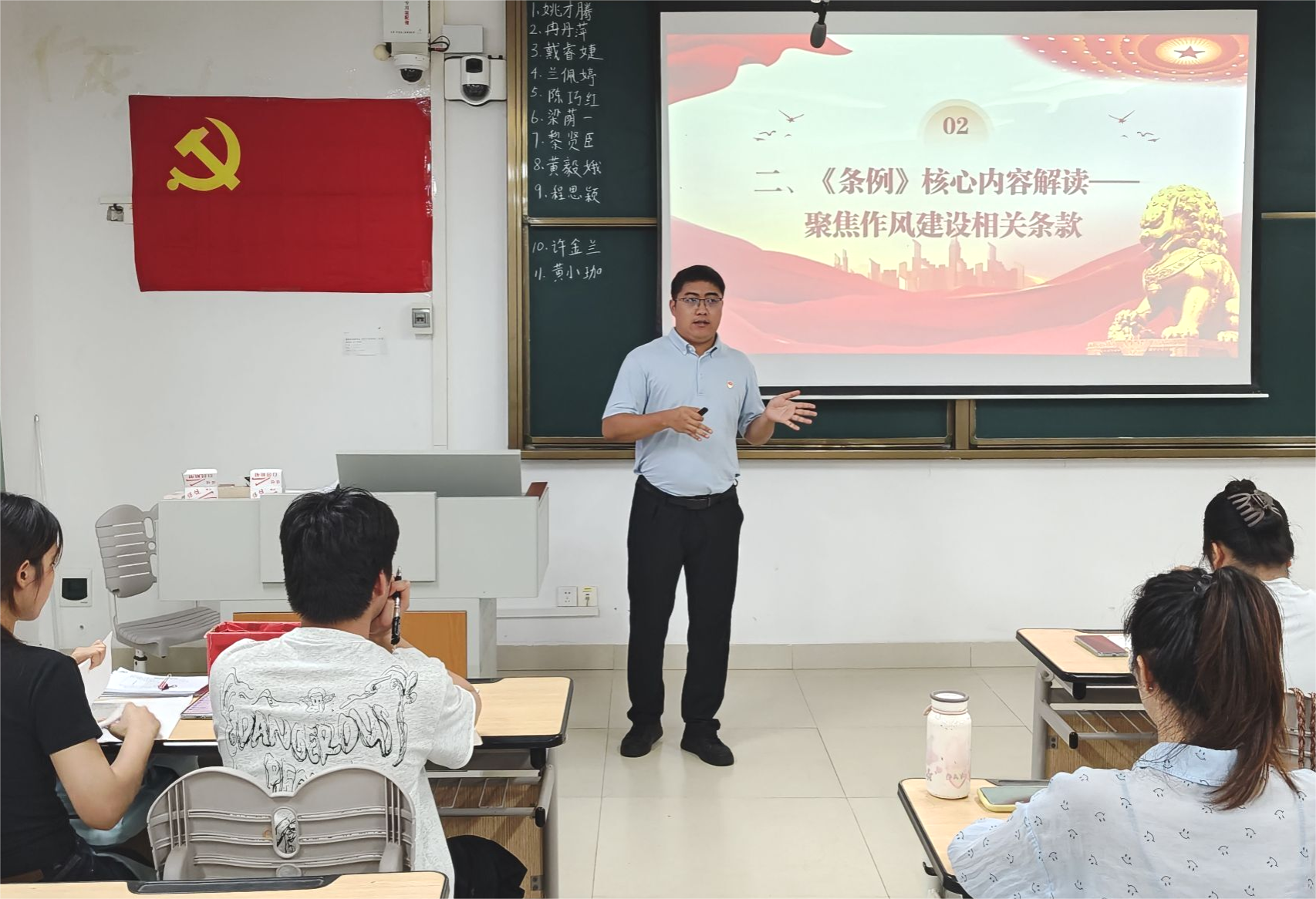 为深入贯彻落实全面从严治党要求,强化党员纪律意识,提升党的作风建设水平,betway必威西汉姆联官网环工专业学生党支部于5月29日晚在武鸣校区1号教学楼219教室开展了《学习中国共产党纪律处分条例—加强党的作风建设》主题党课学习。本次党课由支部书记普胤杰主讲,支部全体党员参与学习。