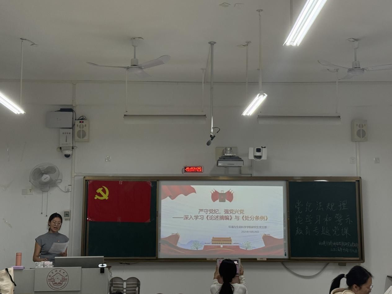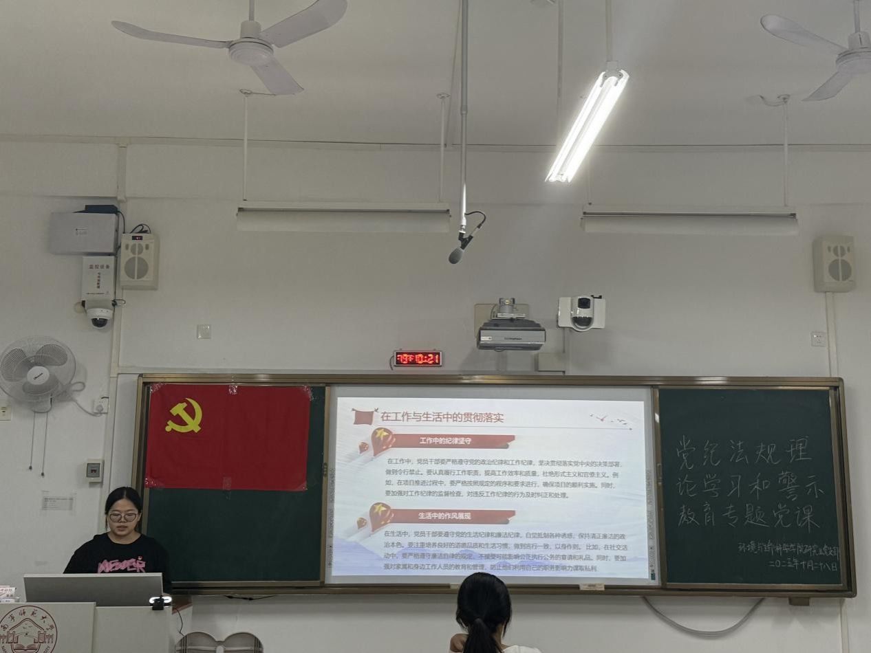 2025年10月28日,betway必威西汉姆联官网研究生党支部于武1-202教室开展党纪法规理论学习和警示教育专题党课。会议由党支部书记卢恩敏主持,研究生党支部全体党员参加会议。