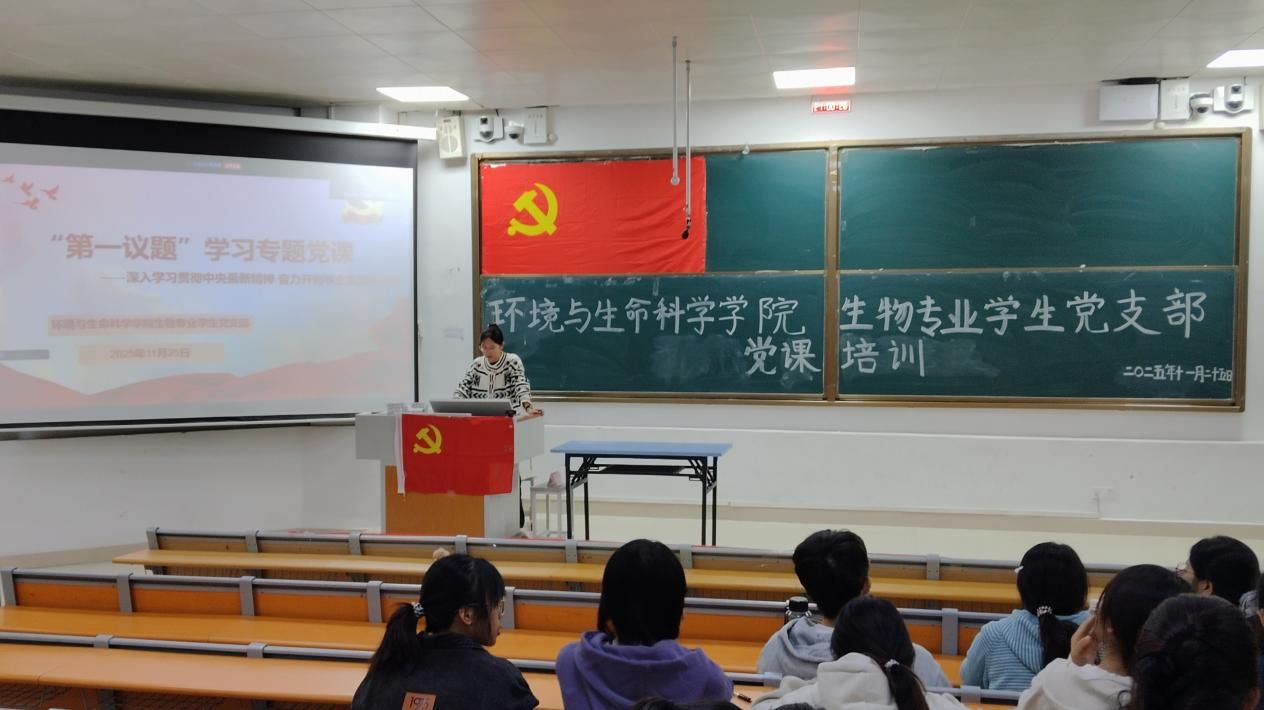 为严格落实“第一议题”制度,深入学习贯彻中央最新精神,betway必威西汉姆联官网生物专业学生党支部于2025年11月25日晚在武鸣校区一号教学楼114教室开展11月份“第一议题”专题党课学习。会议由党支部书记刘雅楠主持,全体党员参加会议。