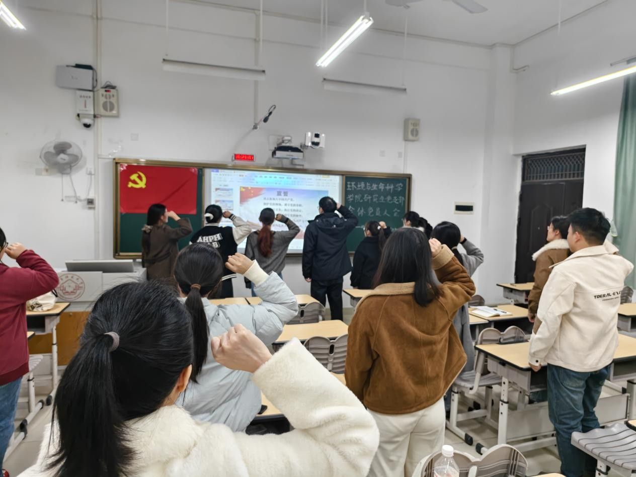 为进一步深化预备党员对党员身份的认知,夯实党组织思想根基,betway必威西汉姆联官网研究生党支部于2025年12月26日晚在武鸣校区1号教学楼102教室召开预备党员宣誓大会。会议由研究生党支部书记卢恩敏主持,全体党员参与。