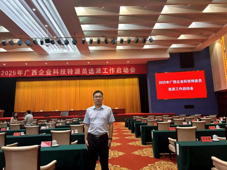为全面贯彻落实党的二十大和二十届二中、三中全会精神,认真落实自治区党委、政府关于深入实施创新驱动发展战略的工作部署,根据《广西企业科技特派员工作方案(暂行)》(桂科发〔2025〕33号)有关规定,经自治区科技厅意向征集、双向选择、补录征集、核查确认、名单审定等程序,我院何英姿、莫莉萍、梁洲辅、张拓、王淑培等五位老师被认定为2025年度广西科技厅企业特派员,是全校入选企业特派员最多的学院(全校本年度共12人入选),其中张拓副教授受学校科研管理处委派作为我校科技特派员代表参加了2025年广西企业科技特派员选派工作启动会。