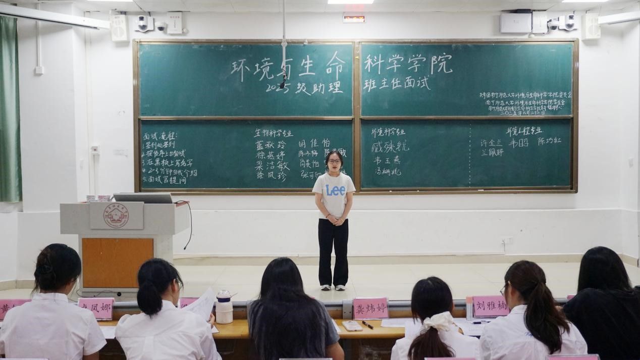 面试现场秩序井然,参与竞选的同学依次上场。本次面试采用“自我介绍+评委提问”的考核形式,全方位考察候选人的组织协调能力、沟通表达能力和应急处理能力。在自我介绍环节,候选人结合自身学生工作经历、志愿服务经验等,展现自己的优势与特长并阐述对助理班主任工作职责的理解,分享自己的工作规划。
