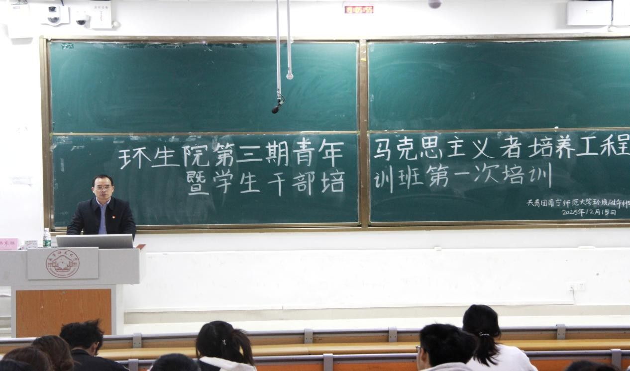 为深化青年马克思主义者培养工程,引导青马班成员深刻把握党的二十届四中全会精神核心要义,betway必威西汉姆联官网于12月15日晚在武鸣校区1号教学楼114教室开展青马班第一次专题培训。本次培训由学院党委书记韦东林主讲,青马班全体成员参与学习。