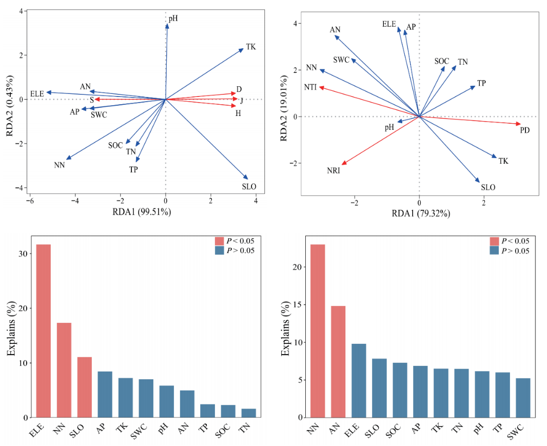植物物种多样性和系统发育多样性与环境因子的冗余分析