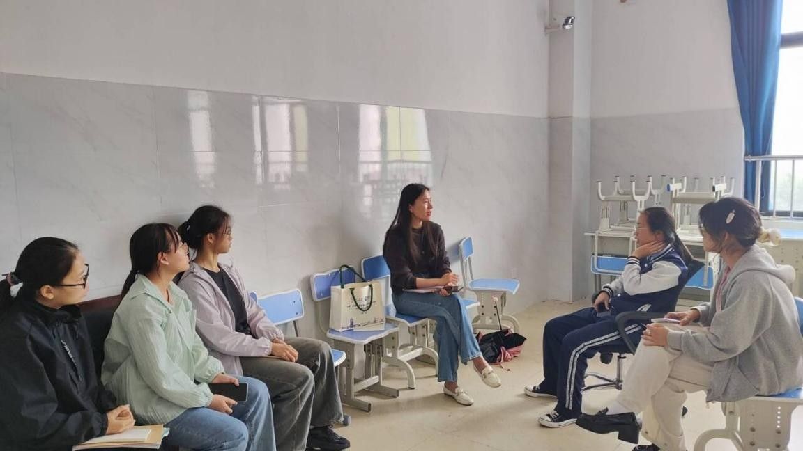 带队教师赵志娟老师专程来到兴宁二中,亲切慰问全体实习生。她详细询问了大家的生活起居、交通通勤及实习适应情况,并逐一了解每位同学在各自班级的教学与班主任工作进展。赵老师特别强调,实习生不仅要关注“如何教”,更要思考“为何教”以及“学校为何这样管理”。她鼓励同学们以研究者的视角观察学校的育人文化、管理制度与教研活动,即使暂时无法解决某些问题,也要养成记录、思考与反思的习惯。“今天的观察与记录,或许就是未来教育实践中的顿悟时刻。”赵老师的话语让实习生深受启发,也激发了大家从更高维度理解教育本质的热情。