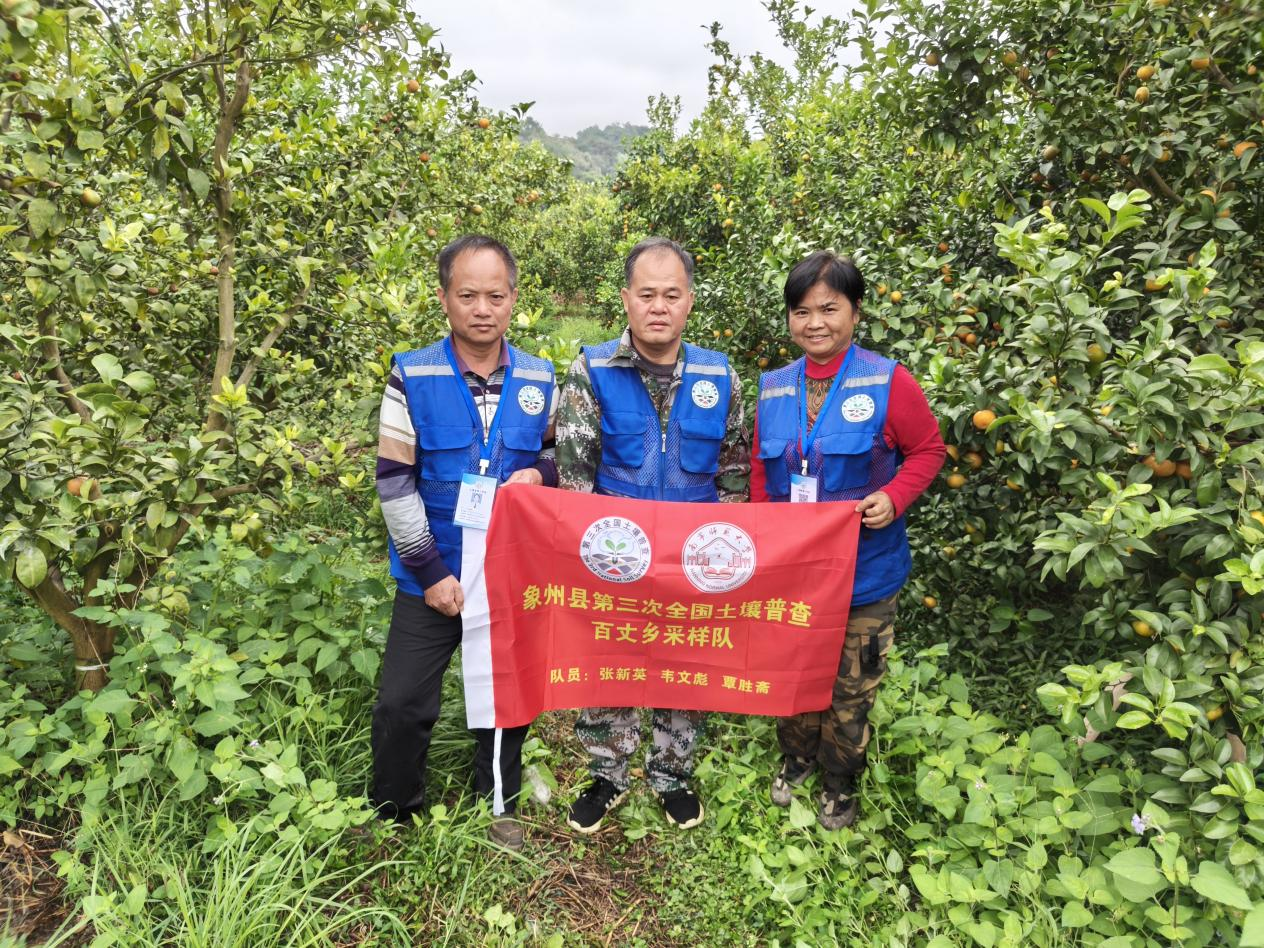 象州县第三次国家土壤普查涉及的样点多,共计1106个点位,分布在11个个乡镇 ,其中果园样点占比超过60%,县域地理环境条件复杂,相比其他县,象州县的采样任务难度大,技术要求高,涉及多领域专业技能的协作,也是一项体能竞赛。我校项目组联同县级主管部门制定了工作方案,积极推进土壤外业调查采样人员掌握外业采样终端使用和平台操作,提升实地采样操作能力和外业调查水平,在工作中不断提升体能和工作效率。