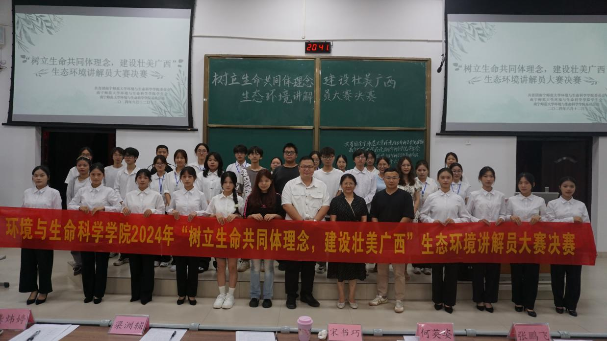 为深入学习贯彻习近平生态文明思想,提高同学们对生态环境问题的关注度,激发学生保护生态环境的热情,betway必威西汉姆联官网于2024年6月12日在地海楼B109教室举办“树立生命共同体理念,建设壮美广西”生态环境讲解员大赛。
