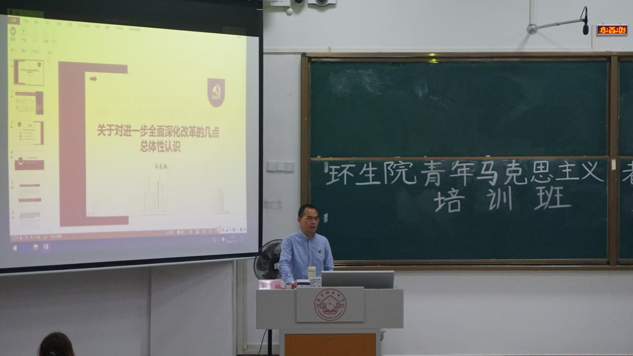 动员讲话结束后,青年马克思主义培训班第一讲正式开始。韦东林副书记结合学习贯彻党的二十届三中全会通过的《中共中央关于进一步全面深化改革、推进中国式现代化的决定》(以下简称《决定》),从党的改革进程出发,与培训班的学员们探讨了党的改革大业为什么能成功,阐释进一步全面深化改革的总环境、总目标和遵循的总指针,为学习领会《决定》精神作出进一步的解读。