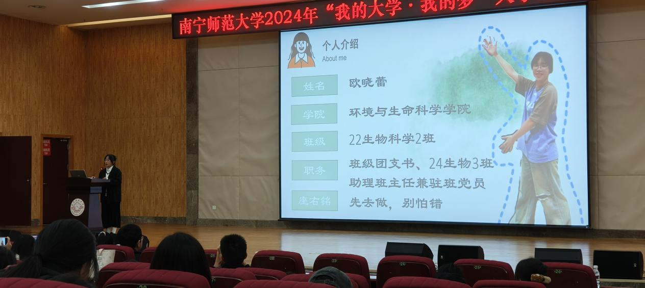欧晓蕾同学的分享为2024级新生们树立了优秀榜样,激励着每一位同学在大学这个广阔的舞台上勇于追梦、不断探索,最终实现自我价值的提升。此次先进事迹报告会也营造了一种积极向上、正向引导、充满活力的校园文化氛围。