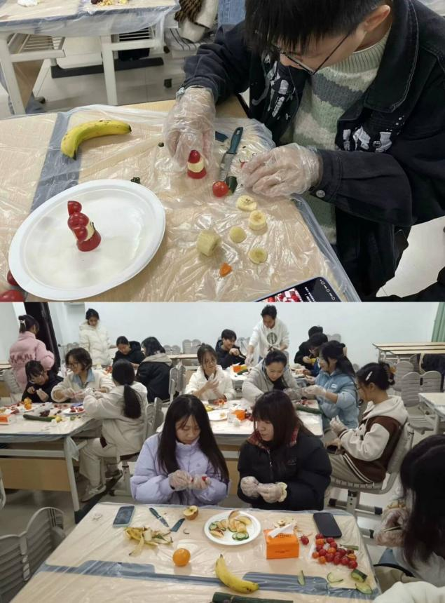 为提升同学们的健康生活意识,促进身心发展,倡导健康饮食的观念,betway必威西汉姆联官网营养与健康俱乐部于2024年12月17日在武鸣一号教学楼117教室举办了以“营养均衡,健康美味”为主题的水果拼盘活动。