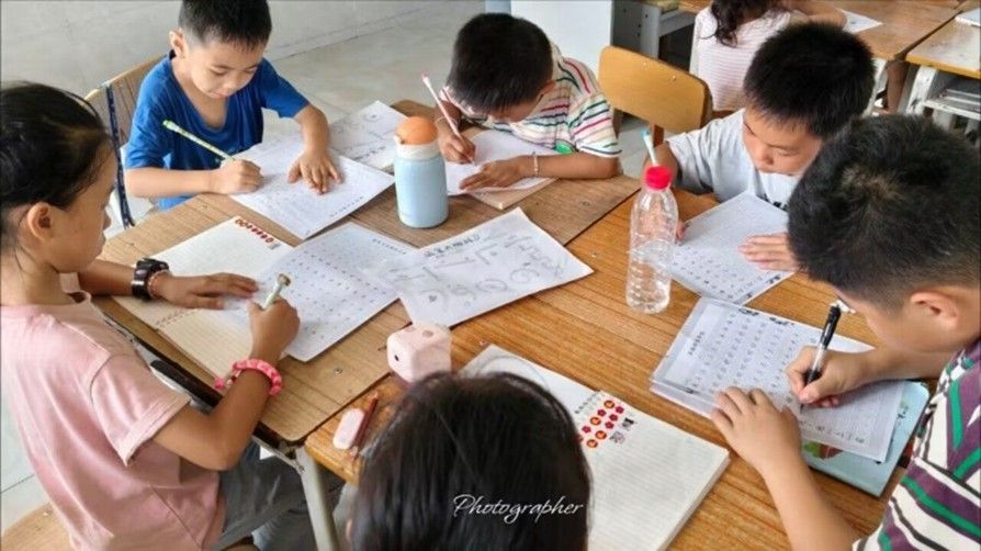 在基础课程教学中,志愿者采用趣味问答、小组竞赛等形式,让学生在轻松氛围中掌握知识,提升学习兴趣。主题班会与故事分享会则传递诚信、友善等价值观,引导学生树立正确观念,点燃孩子们的爱国情。“硬笔书法”教学从横竖撇捺起步,志愿者逐一对孩子们的握笔、运笔姿势纠正,让汉字之美在稚嫩笔尖流淌。