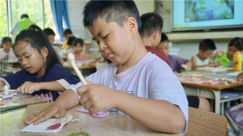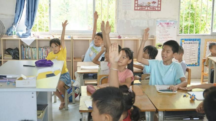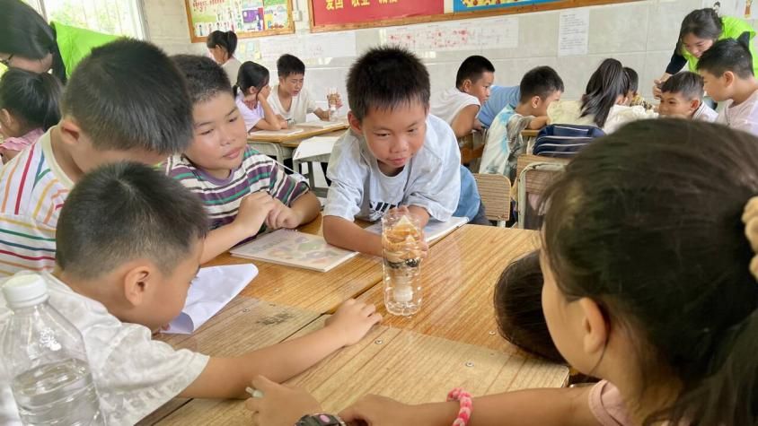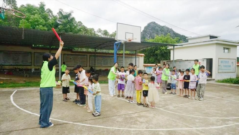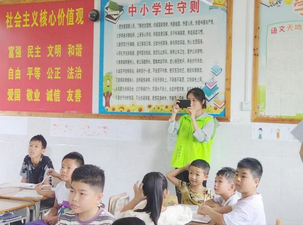 宣传组的工作从实践团进村首日便迅速展开,他们化身“光影捕手”,用相机与手机定格了许多精彩的画面。课堂上,小朋友们搭建过滤水装置时的好奇眼神、手工课上孩子们争相拿起落叶拓染布料的投入模样、提问环节里孩子们高高举起小手抢答的踊跃姿态、支教老师在讲台上条理清晰讲解知识的专注身影,都被一一记录。操场上,升旗仪式中孩子们挺直腰板仰望国旗的庄严,趣味运动会上他们配合默契运送乒乓球的专注,也都被镜头捕捉,成为了珍贵的回忆。