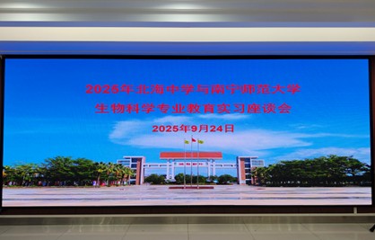 2025年9月24日,北海中学与南宁师范大学生物科学专业教育实习座谈会在北海中学举行,旨在总结实习成果、明确后续方向、深化校地合作,为生物科学人才培养搭建优质平台。