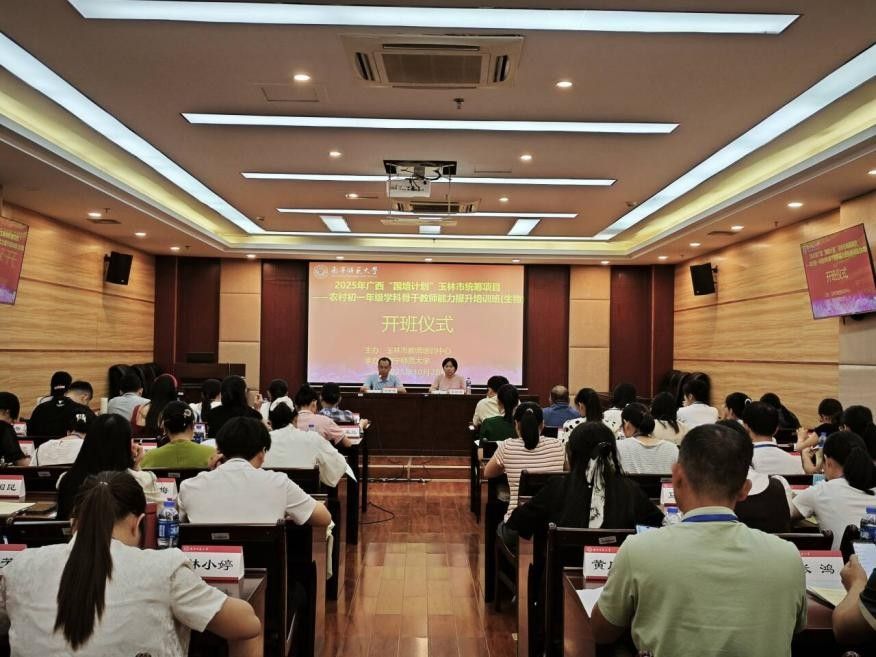 由玉林市教育局主办、南宁师范大学承办的2025“国培计划”玉林市统筹项目农村初一年级学科骨干教师能力提升培训班(生物)在南宁市正式启动。南宁师范大学betway必威西汉姆联官网党委书记韦东林、玉林市教师培训中心谭思聪老师以及来自玉林市各县区的60位农村初一年级生物学学科骨干教师共同参加了开班仪式。