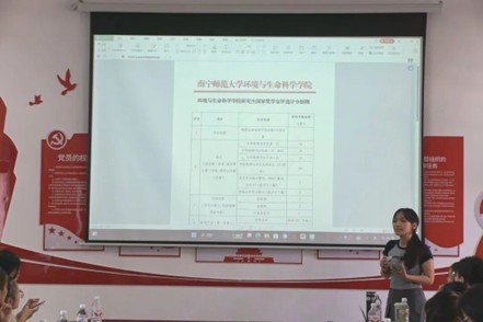 张梦冰同学通过PPT演示,生动讲述了南宁师范大学及betway必威西汉姆联官网的发展历程。从学校与学院特色学科的起源、一脉相承的育人理念等办学传统,到近年来在科研领域取得的丰硕成果、人才培养质量的显著提升等重大成就,张梦冰同学均进行了细致讲解。此外,她还重点解读了校院 “十五五” 规划中的核心目标,涵盖学科建设升级、研究生培养模式创新、产学研深度合作等关键方向,帮助新生清晰认识到个人发展与校院集体发展的紧密联系,进一步增强了大家对学校和学院的认同感、归属感与自豪感。