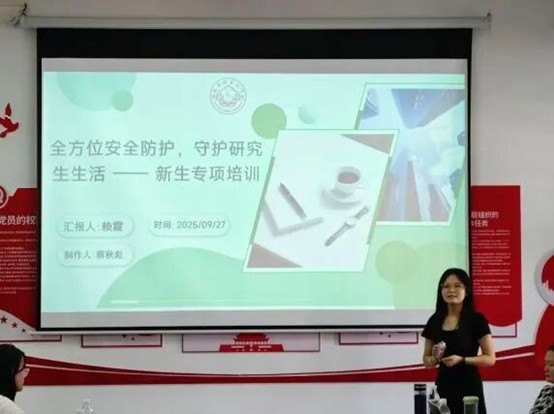 本次入学教育同步推进安全与心理健康教育,文体部成员与班级心理委员聚焦 “全方位安全防护” 主题,围绕反诈、人身财产、实验室、网络、消防、交通、国家安全七大领域,开展了细致的知识讲解。现场不仅传授了 “刷单返利” 等常见诈骗手段的识别方法、实验室突发情况的应急处理流程等实用技巧,还详细告知了校医院就医流程、应急报警方式等关键信息。同时,文体部成员还介绍了学校心理咨询中心的服务内容与预约方式,引导新生主动关注自身心理状态,学会用科学方式调节情绪,为平稳度过研究生生涯筑牢心理防线。