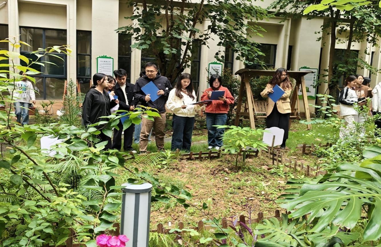 活动开始,主持人首先介绍活动流程及活动注意事项,然后由各班讲解员依次对本班负责的区域进行讲解,深入阐述了本班绿化区域的设计理念、构思和内涵,充分展现了青年一代的丰富创造力和勇于担当的责任意识。随后由各位评委老师结合绿化区域的整体外观、维护情况、创意特色及植物生长情况对各班园艺成果进行打分并逐一点评,给予同学们更专业的指导。接着由班级代表分享活动心得,展示多姿多彩的园艺过程。最后,各位评委老师为参赛者提供指导和建议,进一步激发参赛者的热情和动力,增强他们对未来实践的信心。