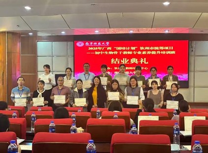 由钦州市教育局、南宁师范大学betway必威西汉姆联官网承办的广西2025年“国培计划”钦州市统筹教师培训项目一初中生物骨干教师专业素养提升培训班于11月14日圆满结束。来自钦州市的60名初中生物学教师参加了此次培训,南宁师范大学betway必威西汉姆联官网院长何英姿出席结业典礼。