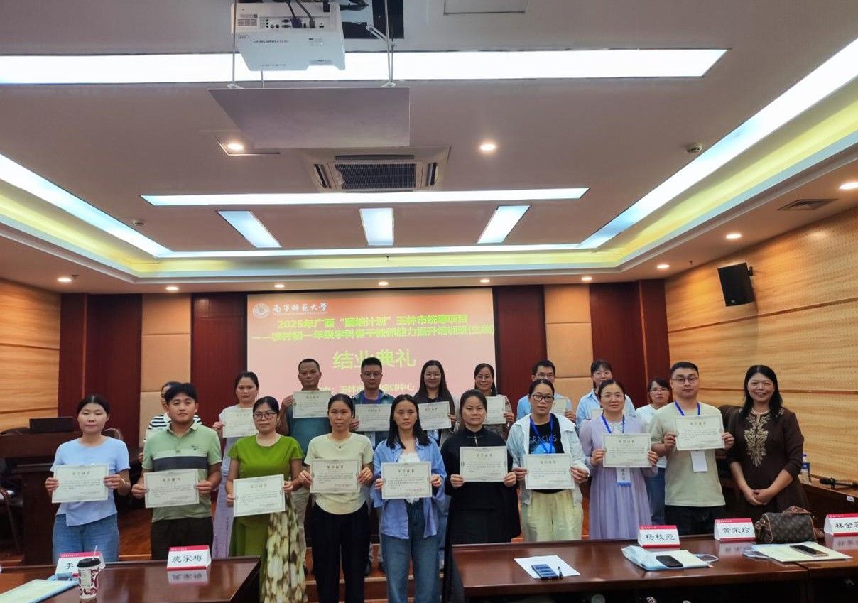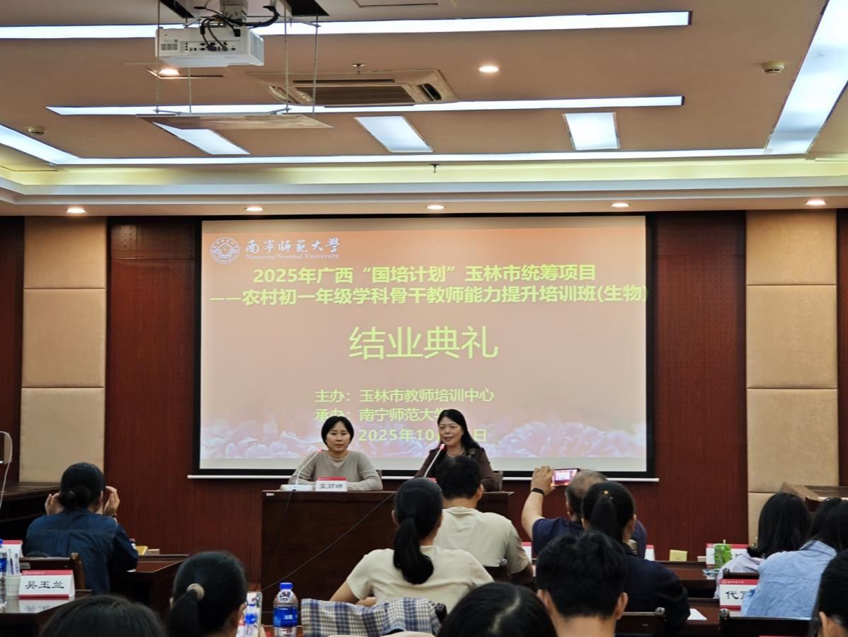 由玉林市教师培训中心主办、南宁师范大学betway必威西汉姆联官网承办的广西2025年“国培计划””玉林市统筹项目—农村初一年级学科骨干教师能力提升培训班(生物)于10月25日圆满结束。来自玉林市的60名初中生物学教师参加了此次培训,南宁师范大学betway必威西汉姆联官网院长何英姿出席结业典礼。