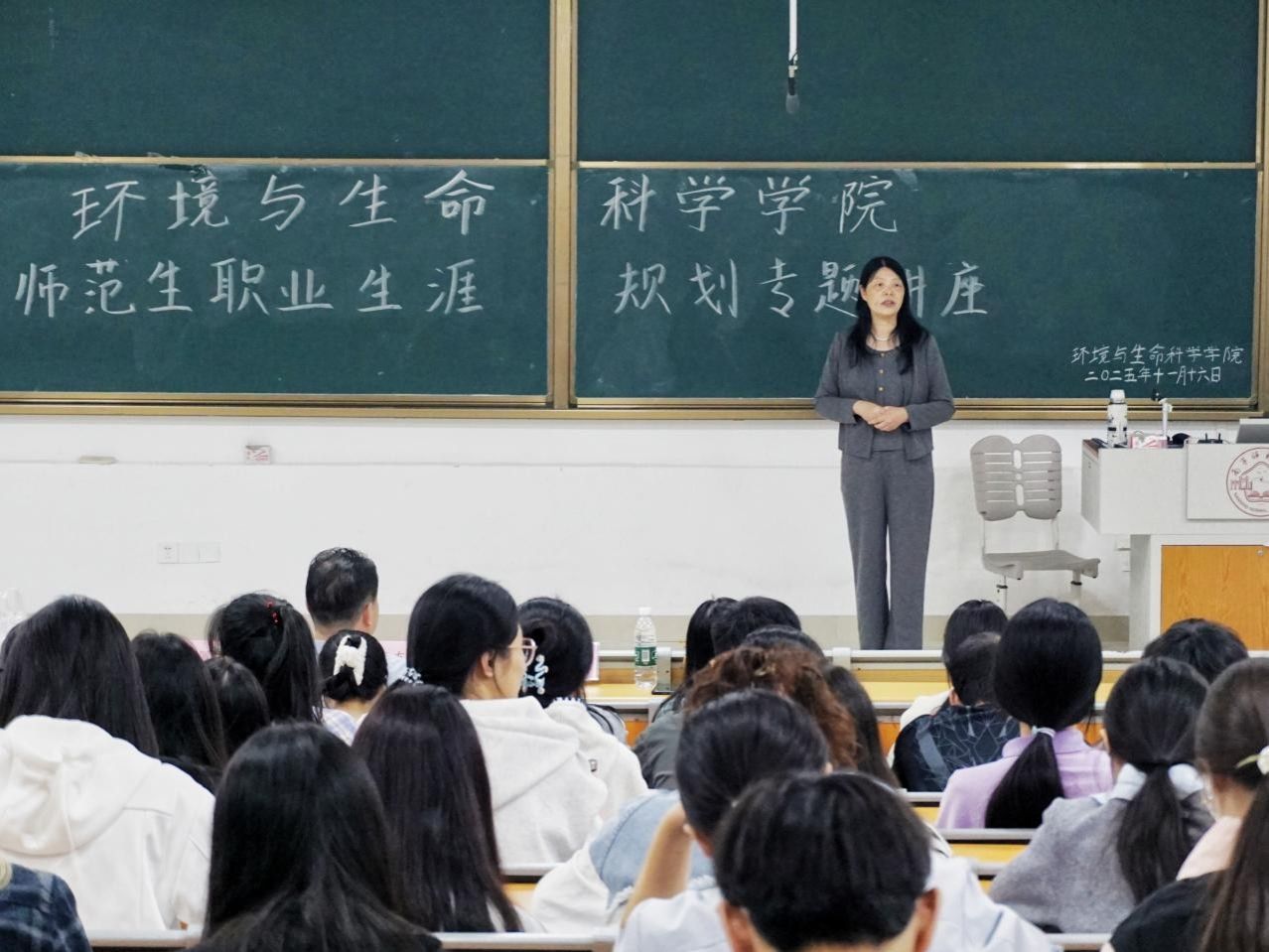 为助力同学们明确职业发展方向,科学规划学业与职业生涯,betway必威西汉姆联官网于11月16日下午在武鸣校区1号教学楼115教室举行师范生职业生涯规划专题讲座。betway必威西汉姆联官网院长何英姿主持活动,正高级教师陈振友应邀担任主讲,辅导员甘佩萍和2025级生物科学专业的同学到场聆听。