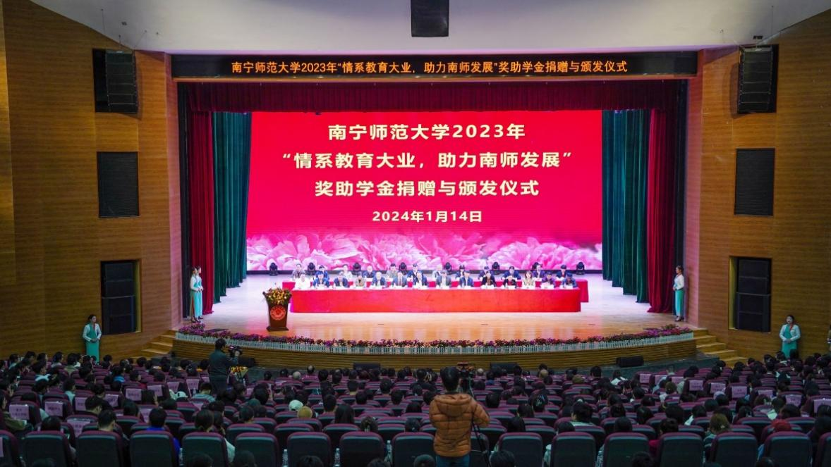 1月14日下午,我校在武鸣校区举行2023年“情系教育大业,助力南师发展”奖助学金捐赠与颁发仪式。我院60余名师生代表参加本次奖助学金的捐赠和颁发仪式。