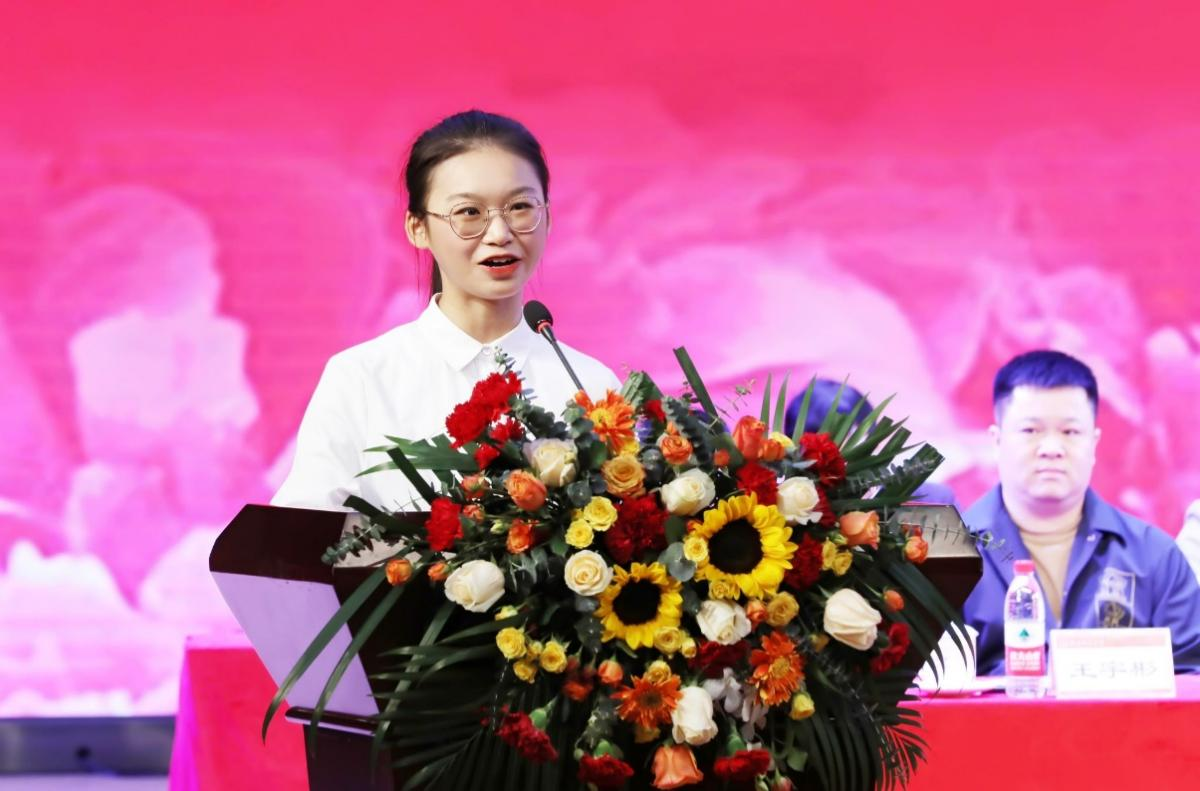 仪式上,阮欣欣同学很荣幸作为获助学生代表上台发言,向学校、校友及社会爱心企业和社会人士表达最诚挚的感谢!阮欣欣同学在发言中讲到“至臻”奖助学金让她在艰难的求学路上重拾信心,看到希望的曙光,并真切地感受到学校和社会给予她的关心、关爱和关注!她认为获奖学生要秉承“德才并育,知行合一”的校训,常怀感恩之心,永葆进取之心,以青春之我、奋斗之我,勇敢肩负起时代赋予的重任,努力在实现中华民族伟大复兴的中国梦的生动实践中放飞青春梦想!